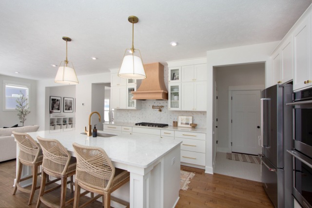 S: Our favorite feature is definitely our beautiful hardwood floors – they add so much warmth to our neutral home! Our favorite space is our kitchen – from the open floor plan to the oversized island, it is the perfect space for gathering and entertaining.